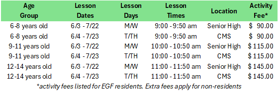 Registration opens Wednesday, March 4th and closes Wednesday, 25th, with a $50 late fee per item will apply to registrations submitted after March 18th. Please review each activity page carefully to ensure you are registering for the correct age group. When registering, please select the days that work best for your schedule.